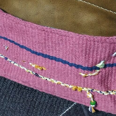 ポケットは綿糸で手織りし、裏地は着物地を使用しています。
